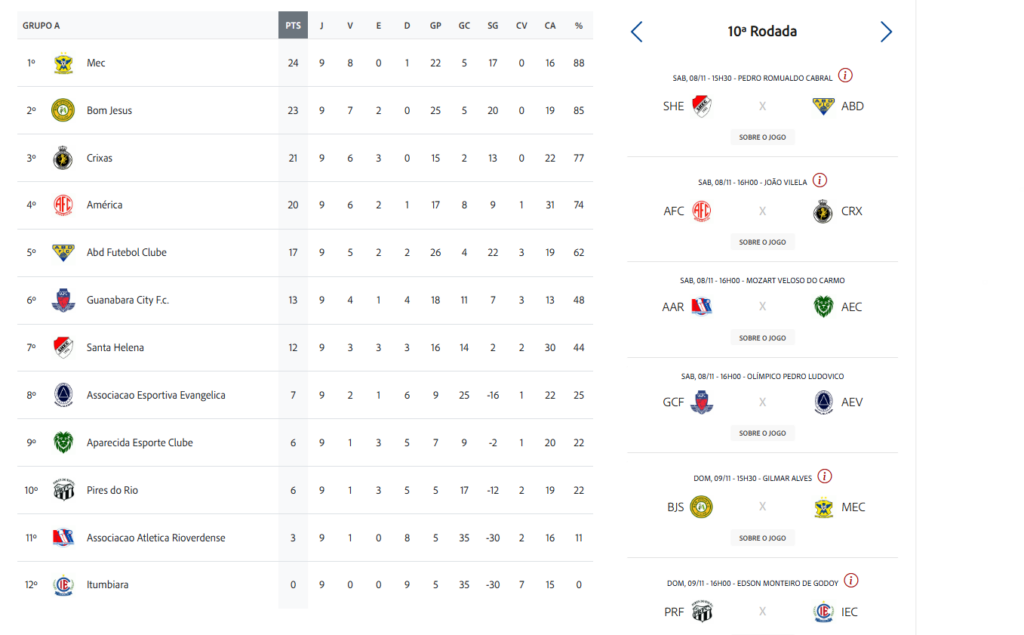 Logo atrás vem o Crixás, terceiro colocado, com 21 pontos. A equipe ainda tem boas chances de subir, se vencer os dois últimos jogos, pode chegar a 27 pontos, ultrapassando o Bom Jesus em caso de tropeço do adversário.